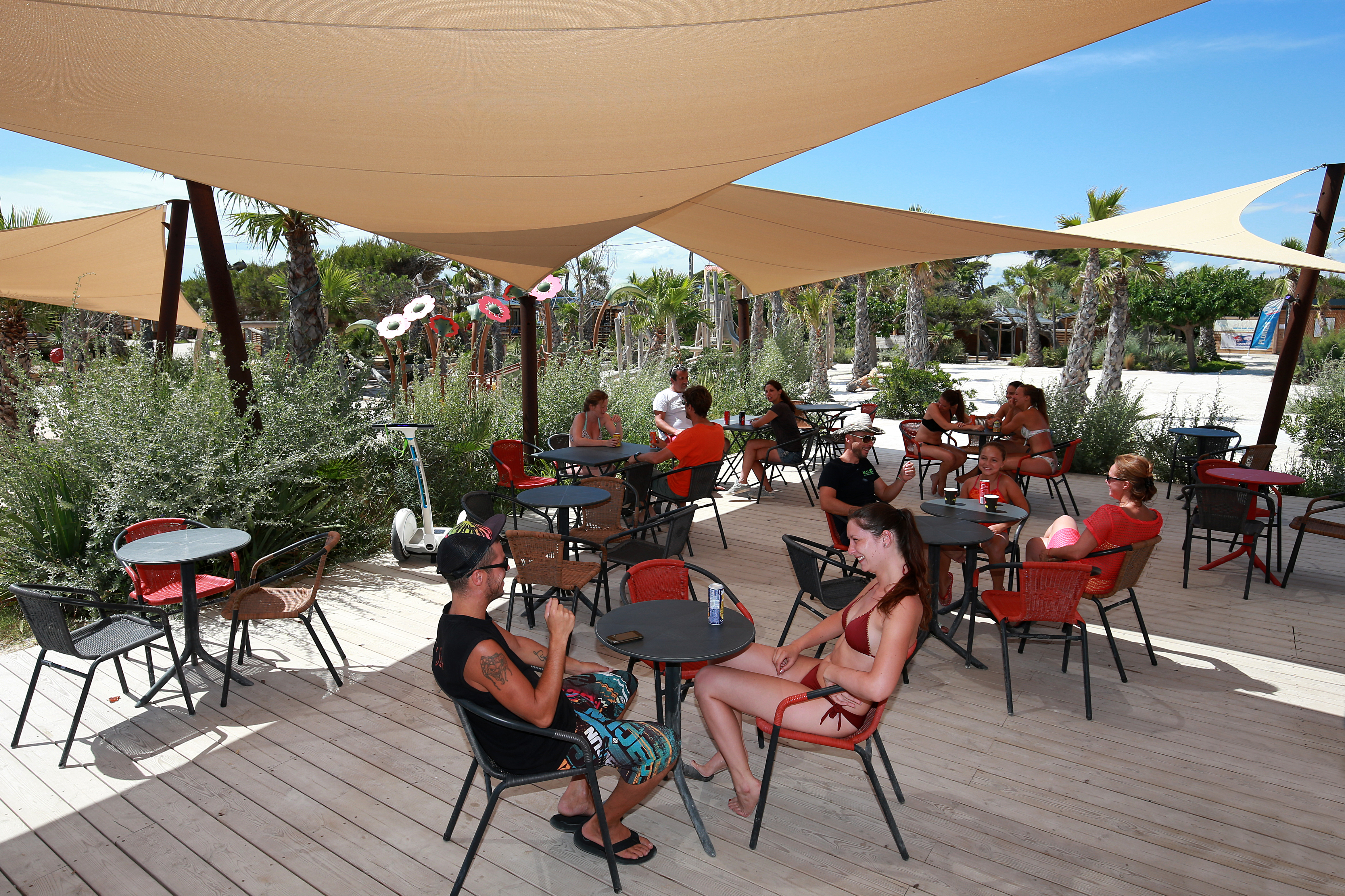 Kinderen kunnen zich uitleven in de speeltuinen en deelnemen aan de activiteiten van de kids- en tienerclub. Sportliefhebbers kunnen meedoen aan voetbal- en basketbaltoernooitjes of genieten van fitnesslessen. Voor de ouders zijn er yoga en aquagym sessies. Met de huurfiets verkent u de omgeving. Het restaurant 'Les Pieds dans l'Eau' en de bar zijn open van eind maart tot eind september voor een heerlijke maaltijd of een verfrissend drankje, evenals de shop.