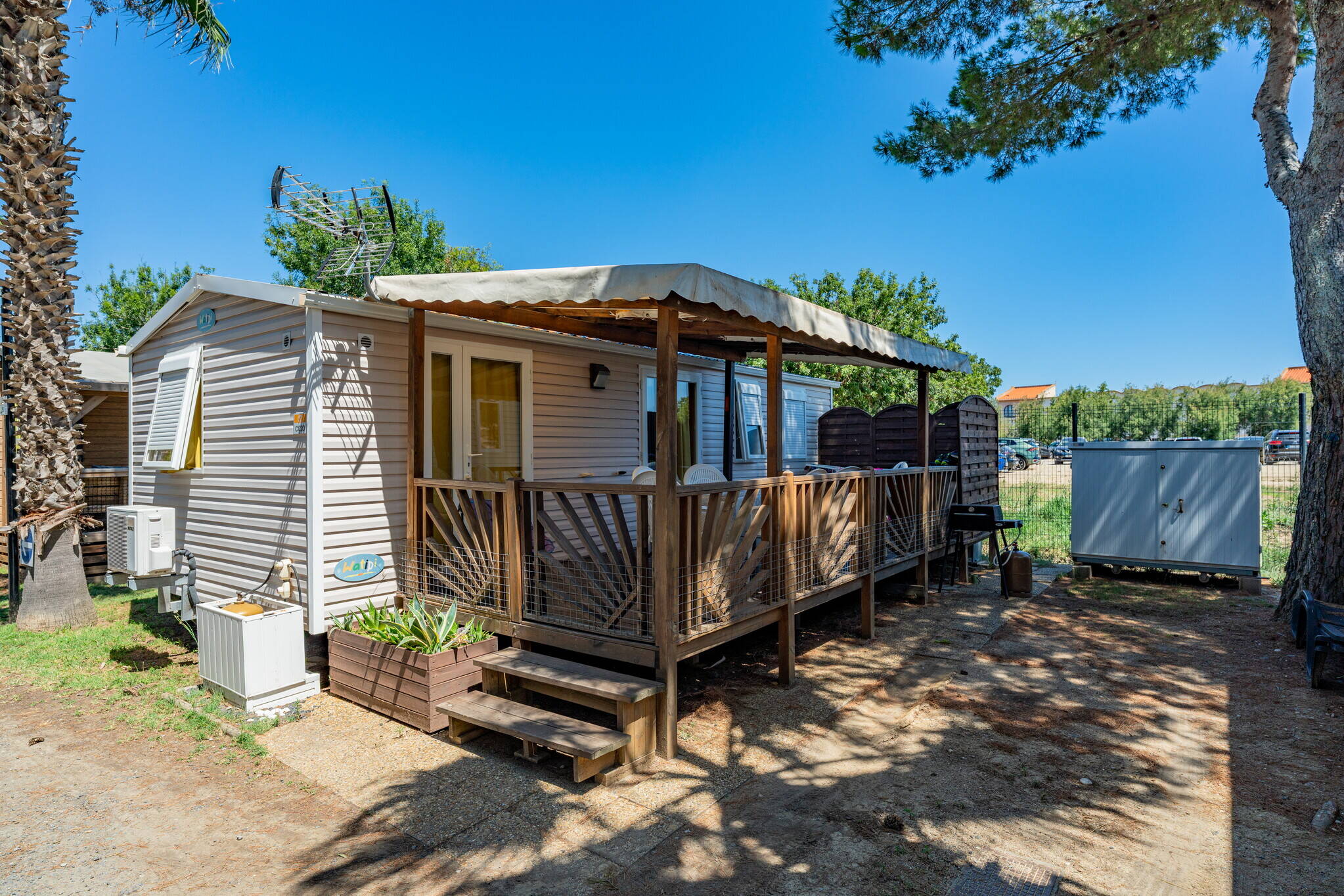 Het waterpark van Camping Le Soleil de la Mediterranée is in 2019 heringericht. Er is hier voor iedereen wel wat leuks te vinden: reuzenglijbanen, peuterbadje voor de kleintjes, overdekt zwembad als het weer wat tegenzit en een leuke lazy river. De verveling zal hier niet snel toeslaan. Daarnaast is er een prachtig zandstrand op slechts 800 meter afstand. Geniet hier van een ontspannende vakantie.