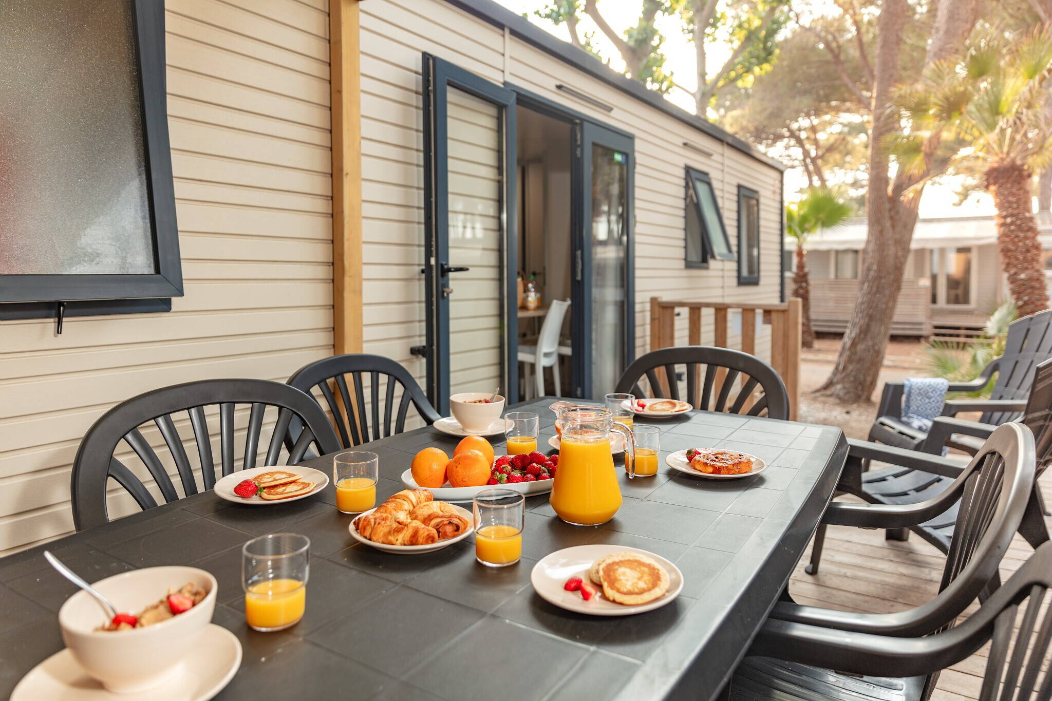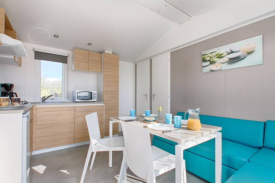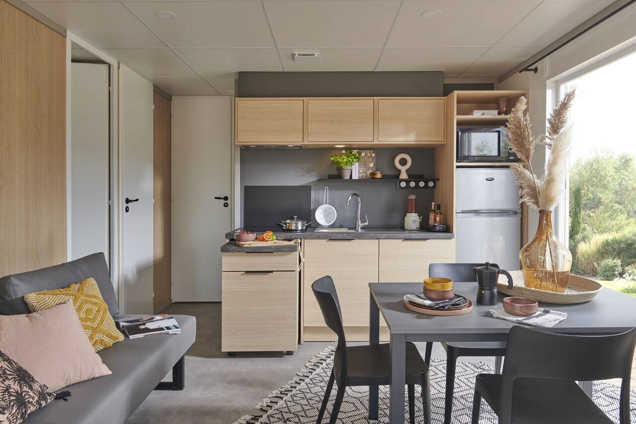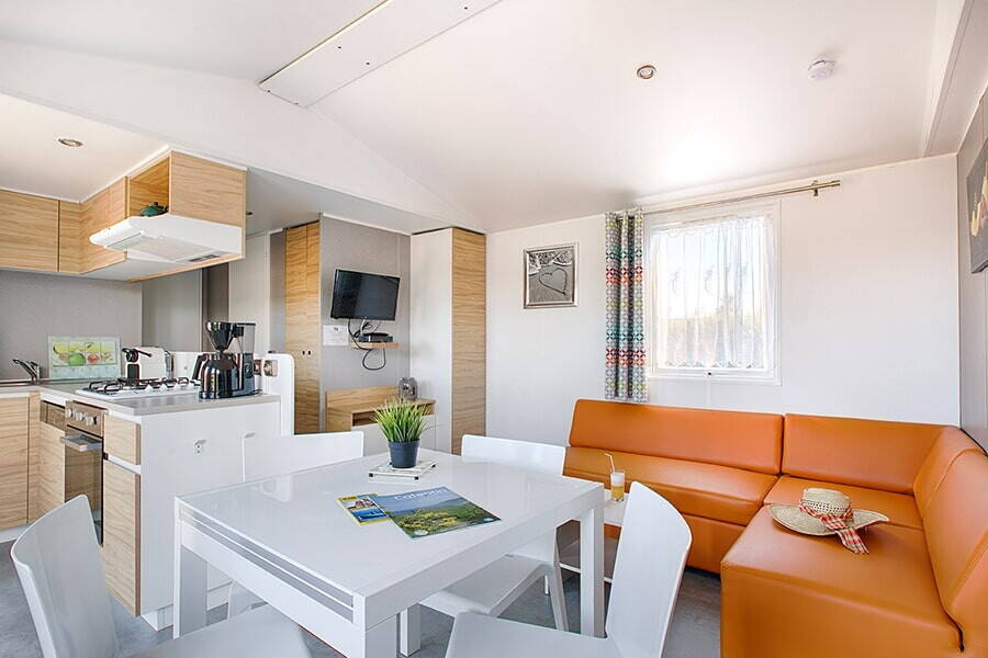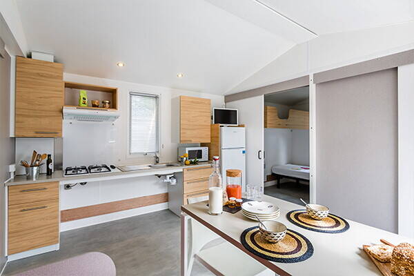 Er is een leuke kinderboerderij waar de kinderen de alpaca's, ezels en geitjes kunnen ontmoeten. Dit is vaak het hoogtepunt van de dag voor de kleintjes! Voor de nodige energie zijn er trampolines, een groot springkussen en verschillende speeltuinen verspreid over het terrein. Het animatieteam organiseert in het hoogseizoen dagelijks leuke activiteiten, van knutselen in de ochtend tot sporttoernooien op het multisportveld. Terwijl de kinderen nieuwe vriendjes maken, kunt u zelf even ontspannen in de sauna of de fitnessruimte. Heeft u geen zin om te koken? Geen probleem! Het restaurant op de camping serveert heerlijke pizza’s en lokale gerechten, en bij de bar haalt u de lekkerste ijsjes. Voor de verse croissantjes en stokbroden kunt u elke ochtend terecht in de kampwinkel, zodat u de dag begint met een echt Frans ontbijt op uw eigen terras.